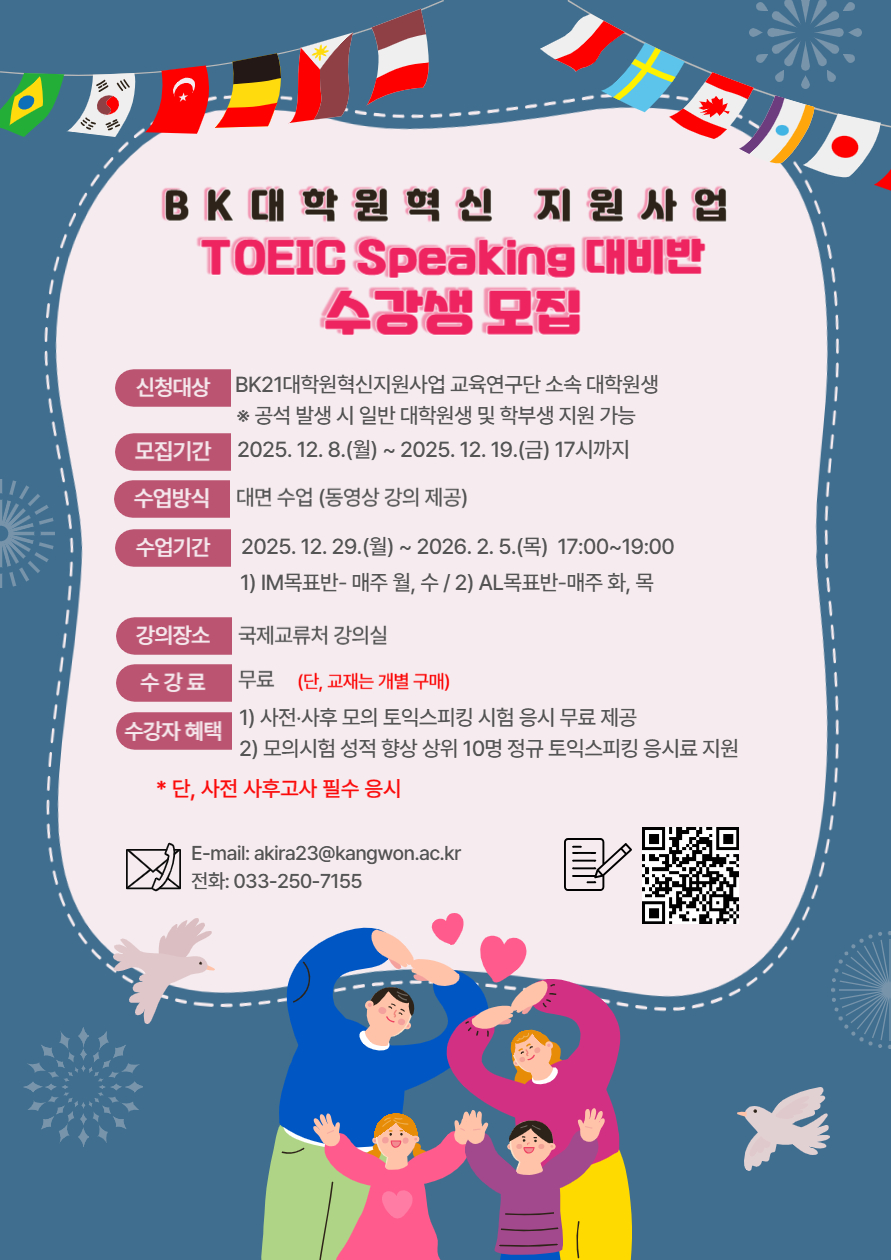 [4단계 BK21 대학원혁신지원사업] 2025년 교육연구단 소속 대학원생 영어 강좌 신청 안내